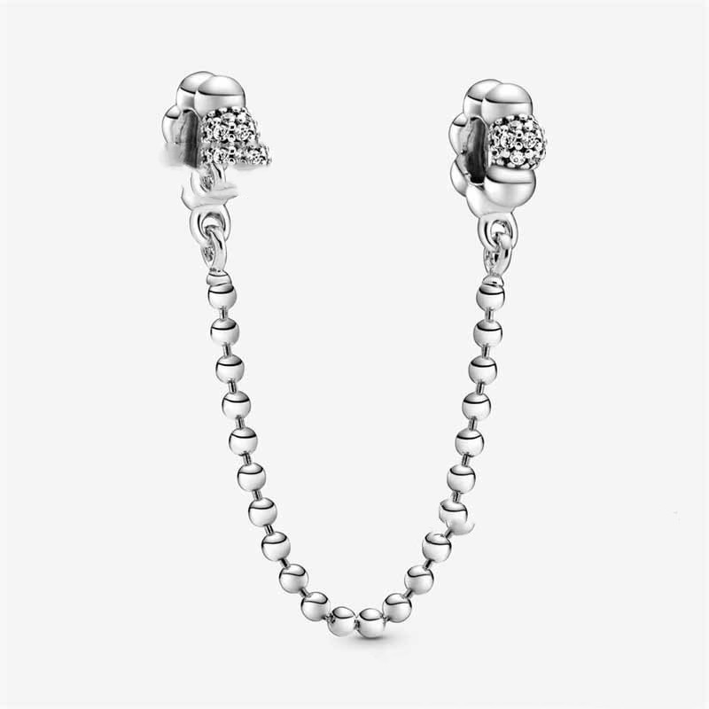 Charm Bracelet 925 Sterling Silver Hand Sparkling Moon Star Safety Chain Clip