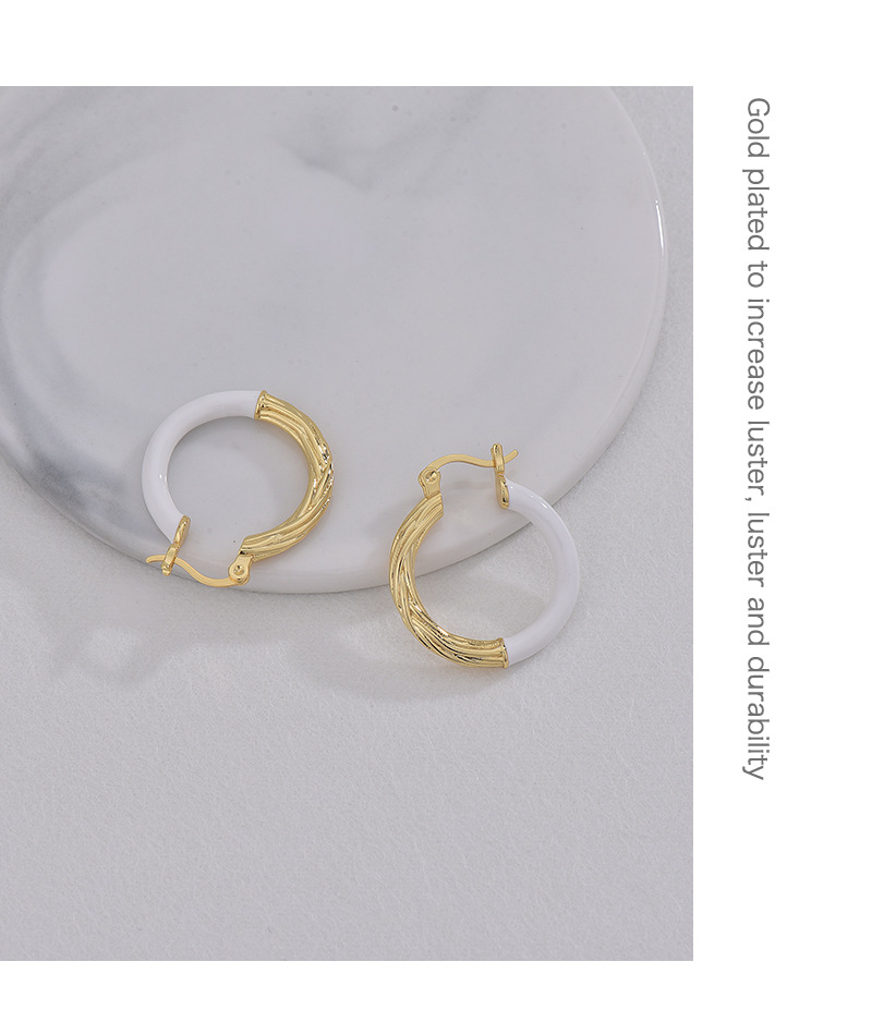 Product information:Treatment Process: Electroplating Color: gold epoxy earrings Applicable people: women Material: Copper Purity: copper plating 18K gold Shape: Geometric Popular elements: Ring Style: European and American