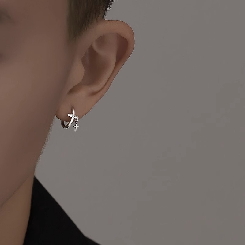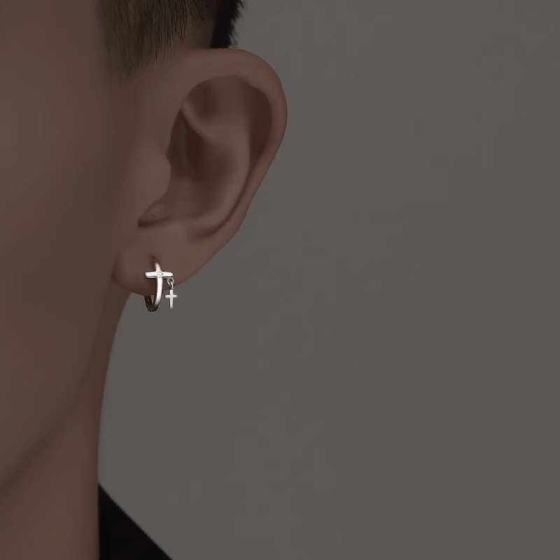 Product information:Treatment Process: Electroplating Color: double cross ear clip left ear, double cross ear clip right ear Applicable people: men Material: Copper Style: Personality
