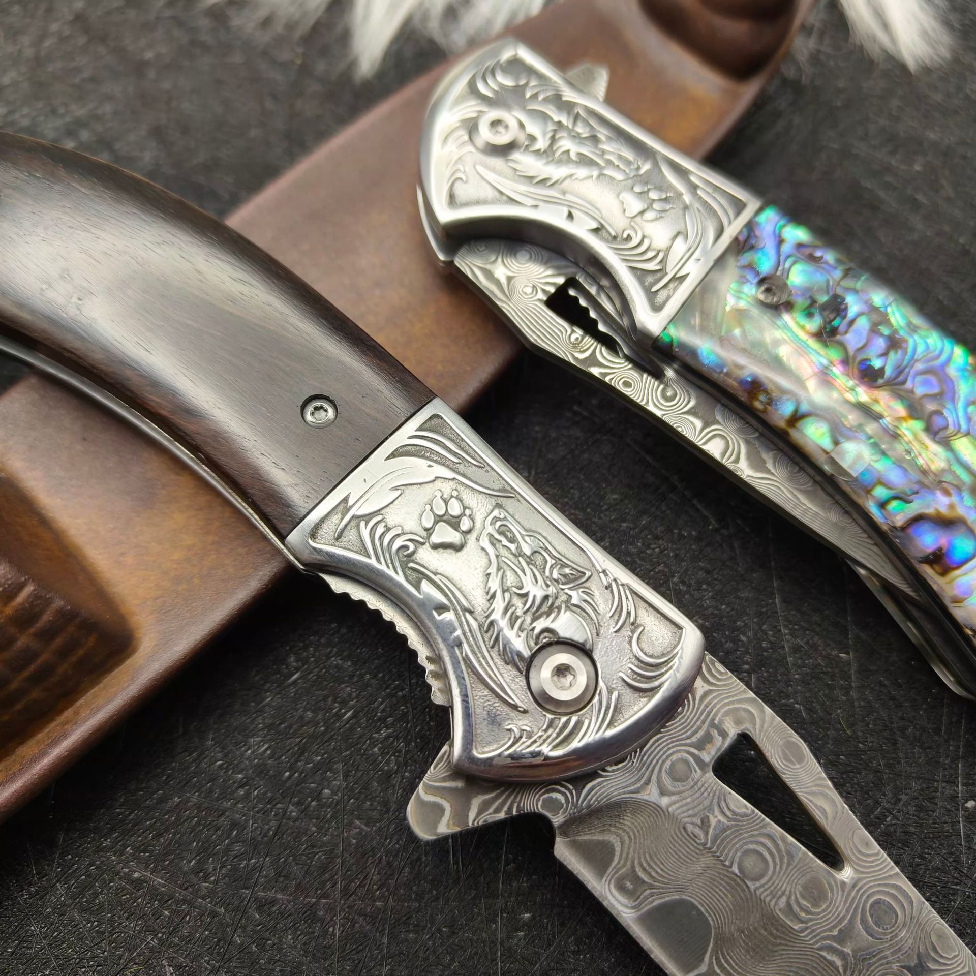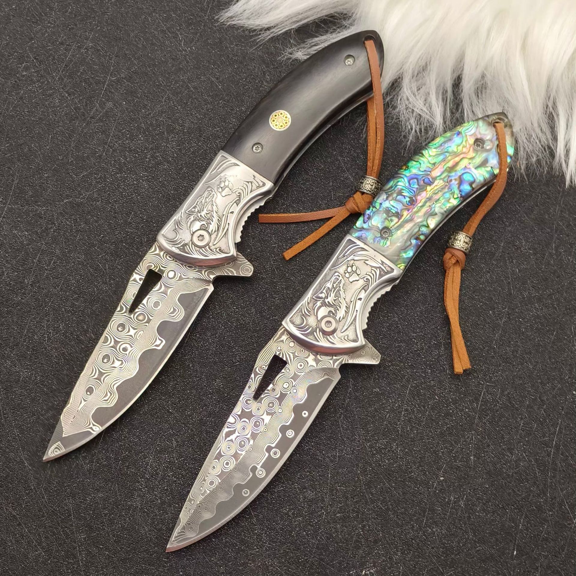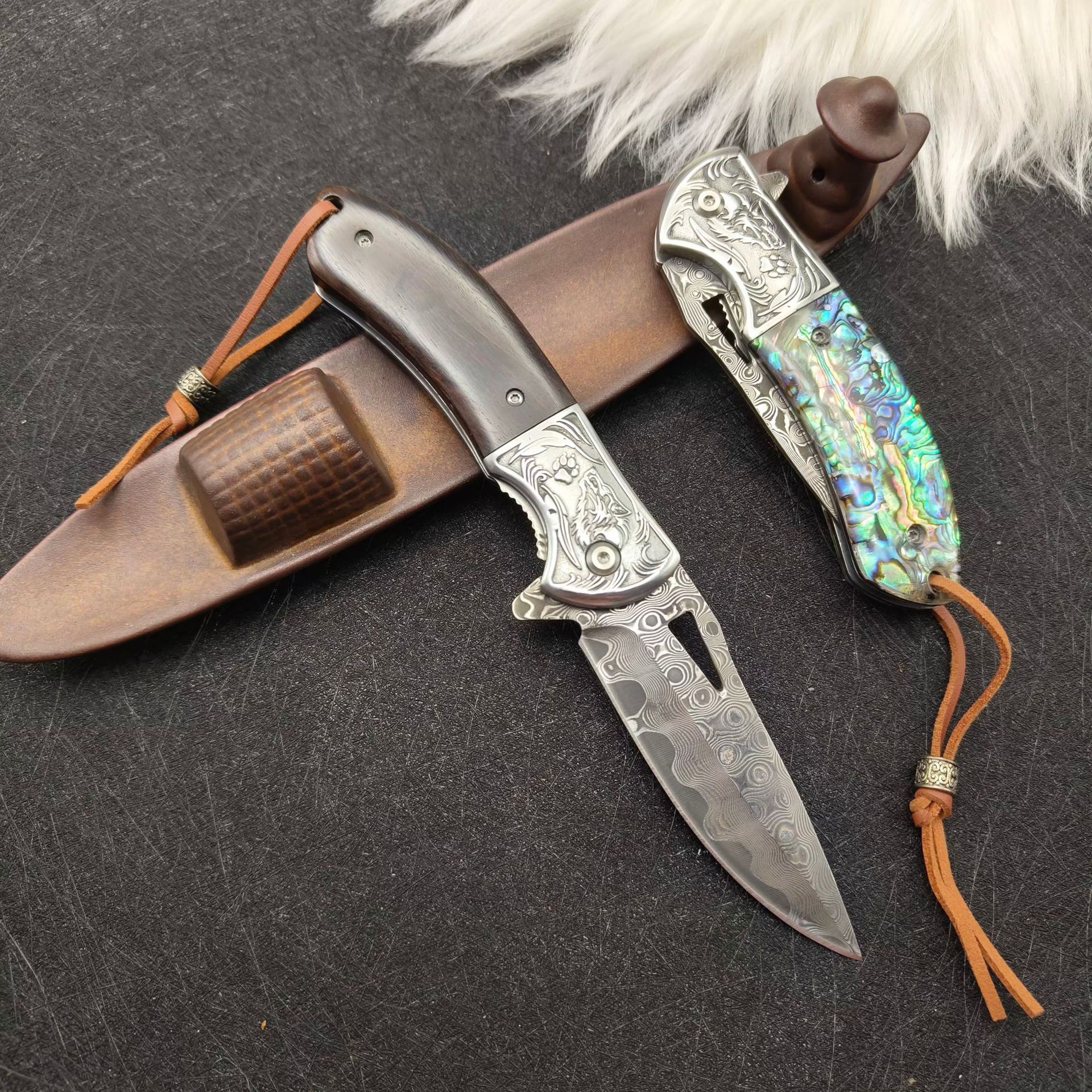 Damascus Steel Outdoor Folding Knife Portable Fruit Knife Sharp