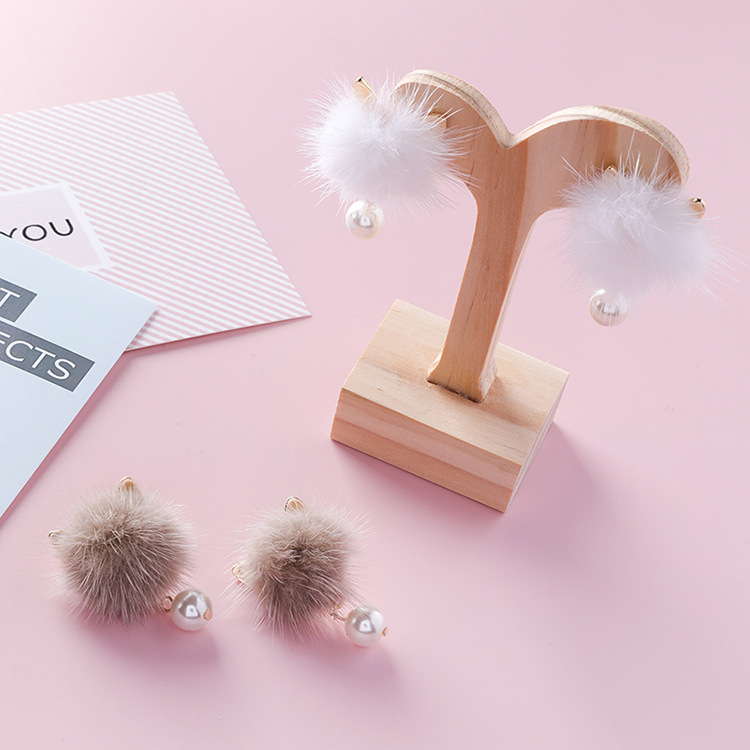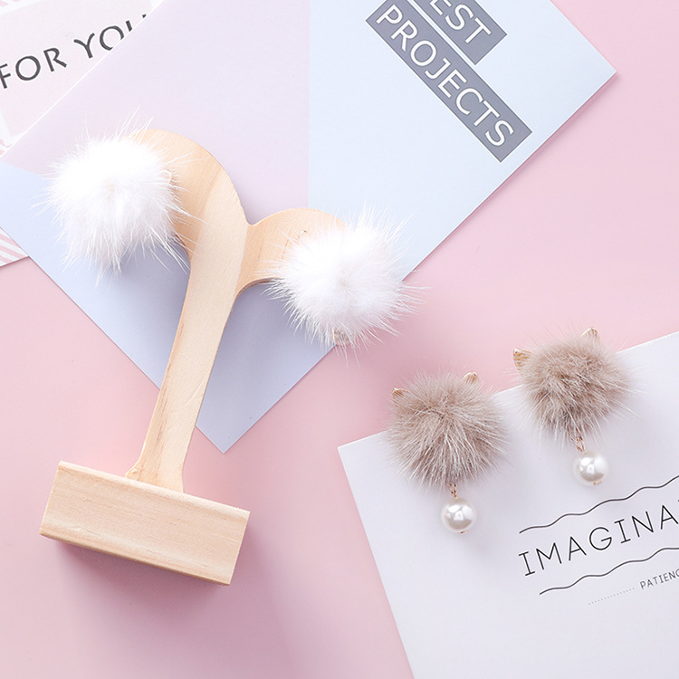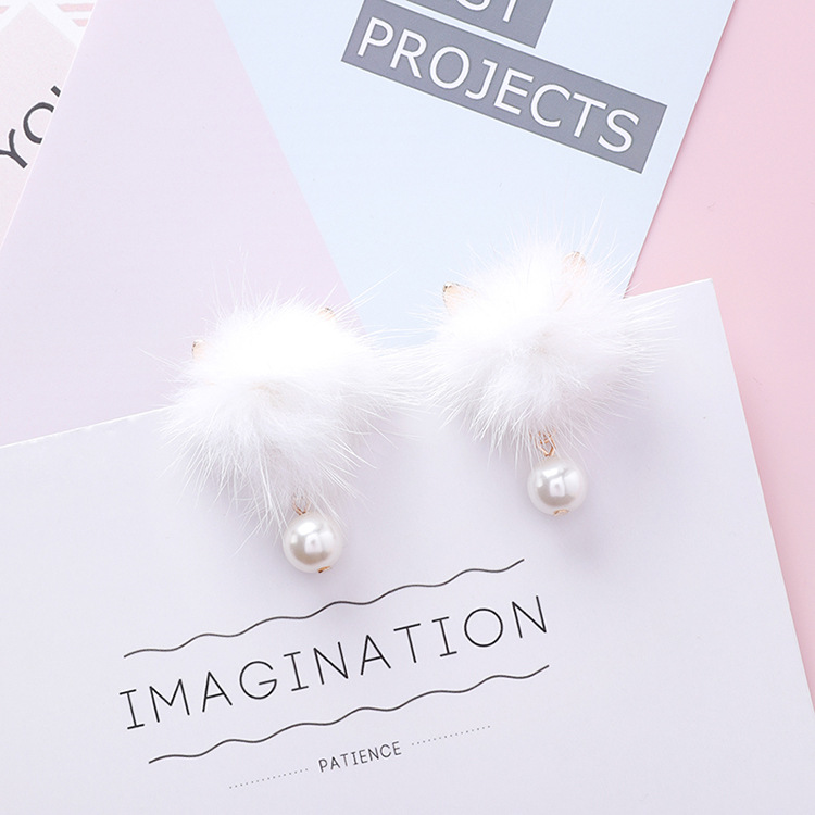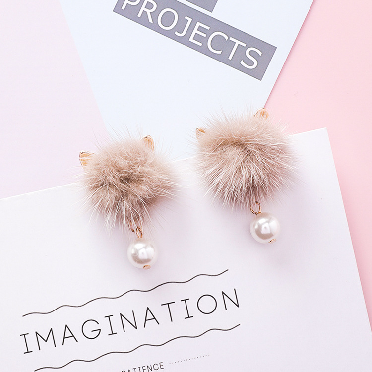 Korean version of the autumn and winter new sweet student cat ears hair ball earrings personality water mink pearl earrings earrings