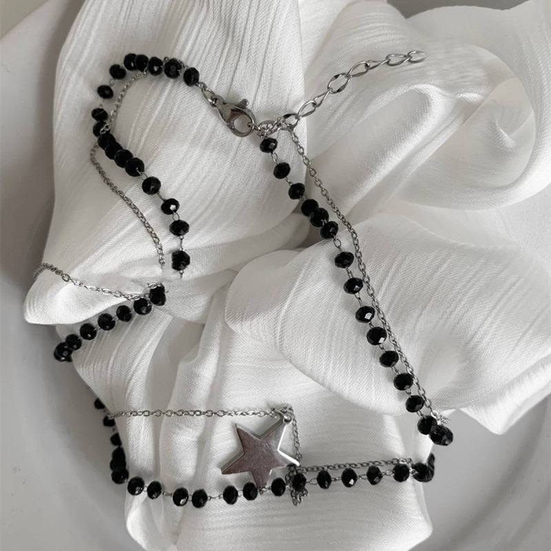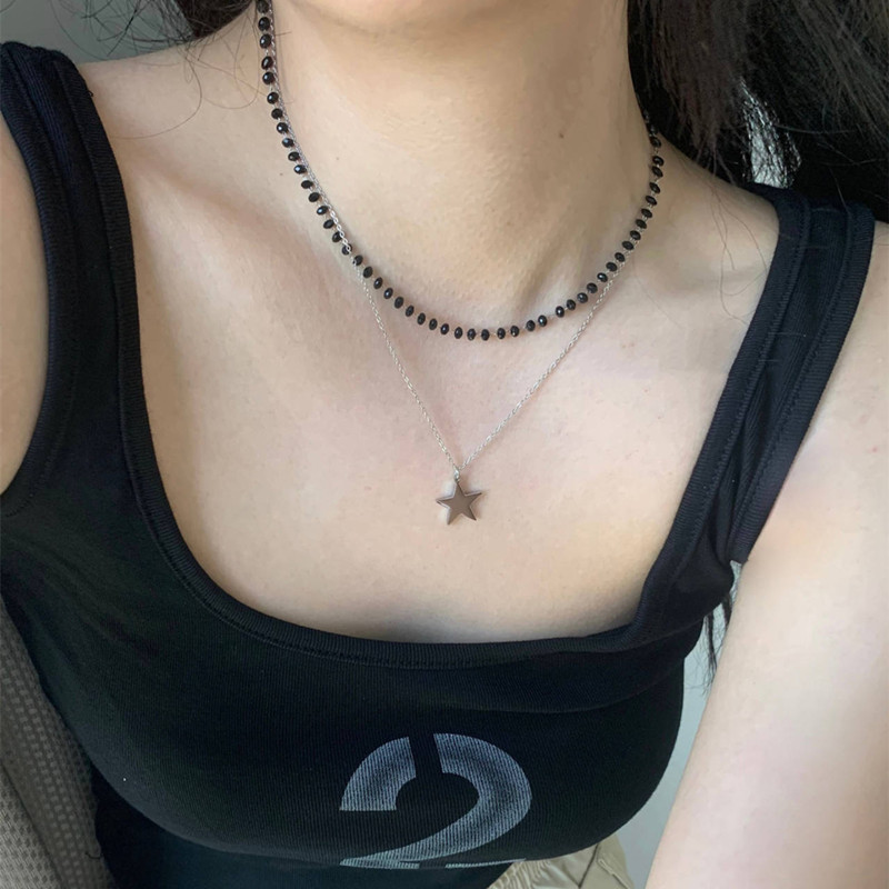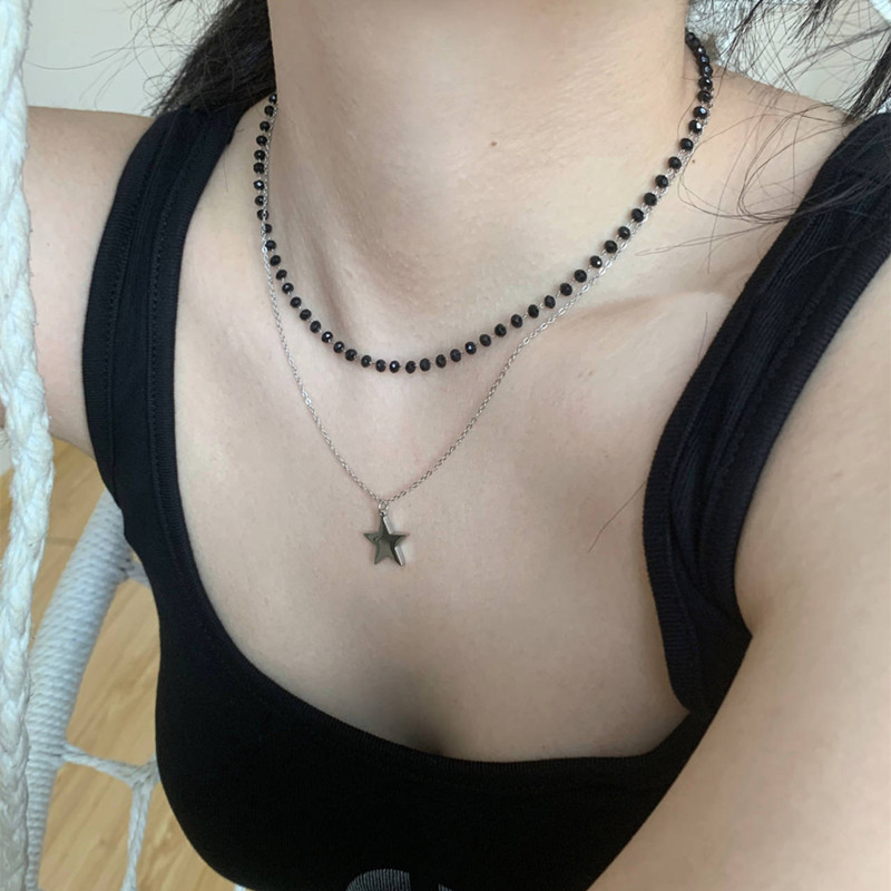 Product information:Color: Black Crystal pentagram necklace Chain style: Regular Chain Material: Alloy Hot elements: five stars Loop: 41cm (inclusive)-50cm (inclusive) Applicable person: women Shape: Geometry