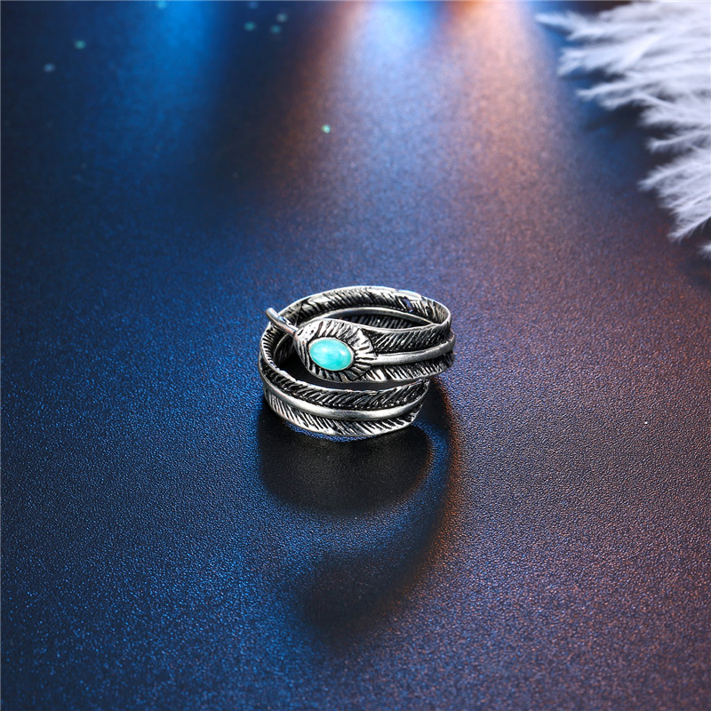 Material: titanium steel Style: Europe and AmericaModeling: leaves, leaves, feathersProcessing technology: Inlaid silverApplicable gift-giving occasions: travel memorialStyle: Men'sMosaic material: not inlaidSeries: RingImage: Indians