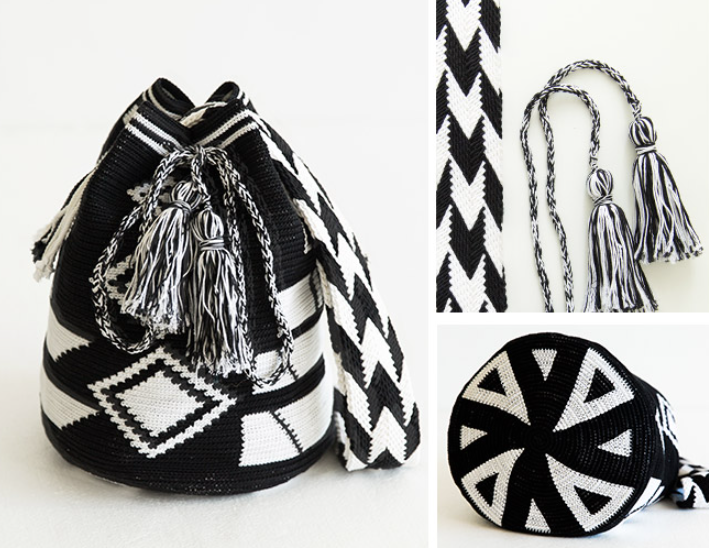 02. Black and white geometric models:Height: 30cm bottom diameter 24cm bag width: 5.5cm strap length (excluding spikes): 1m