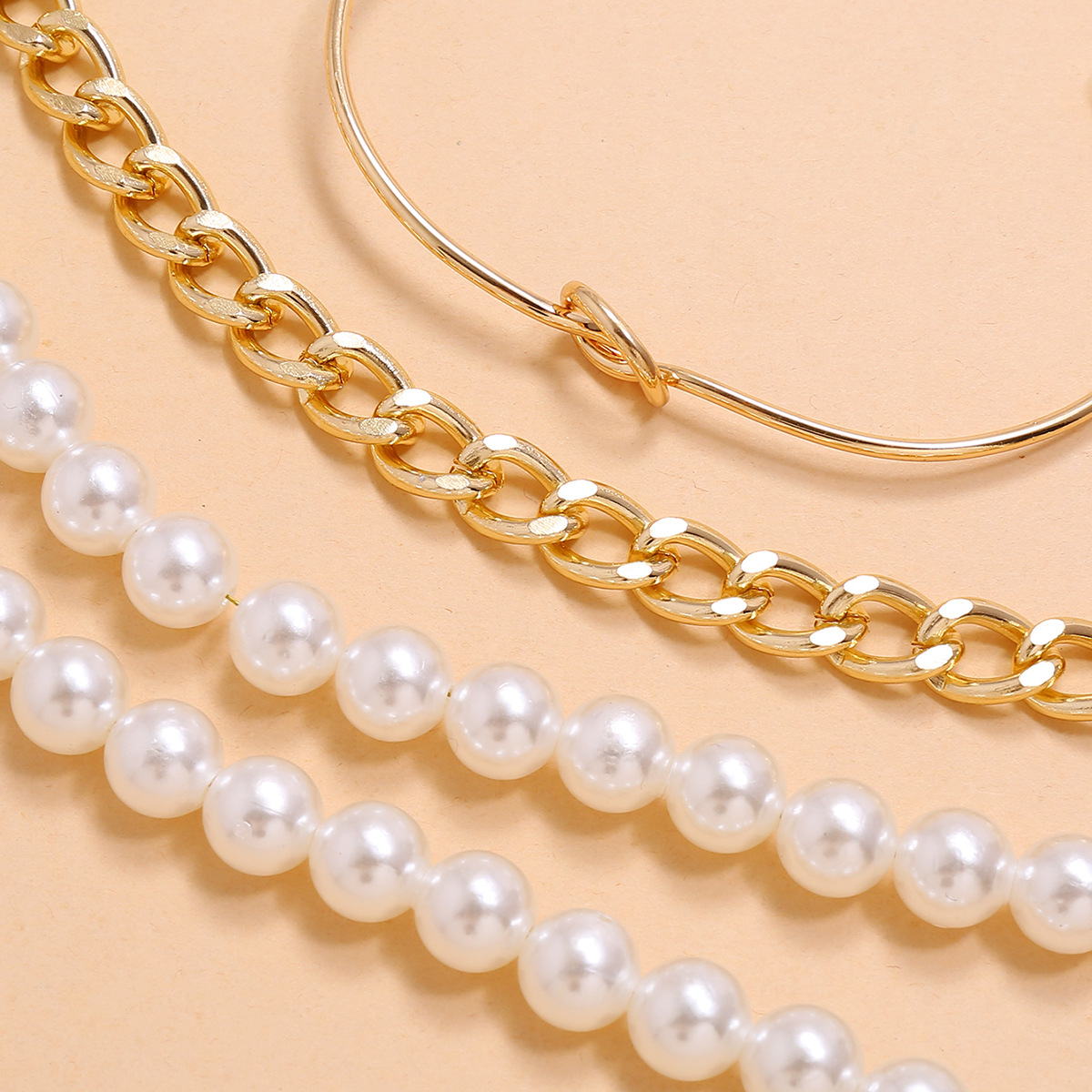 Product name: European and American exaggerated punk street style embossed portrait imitation pearl lock 4 four-piece set, male and female couple bracelet