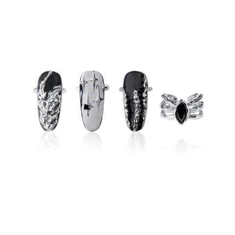 Product information:Color: A. Knuckle ring, B. Large area texture, C. Black Diamond asterism, D. Three rows of texture, A B C D Set of 4 piecesMaterial: 925 silverPopular elements: NoneStyle: Original design