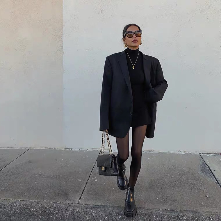 Style: Streetpattern: plainEdition type: LooseLength: Medium length (65cm<length≤80cm)Collar type: V-neckClothing placket: single breastedSleeve length: long sleeveColour: Black
