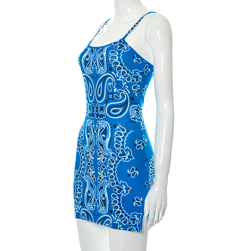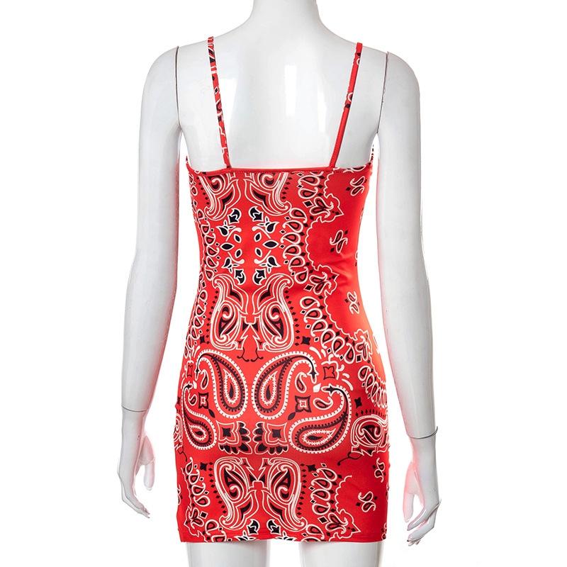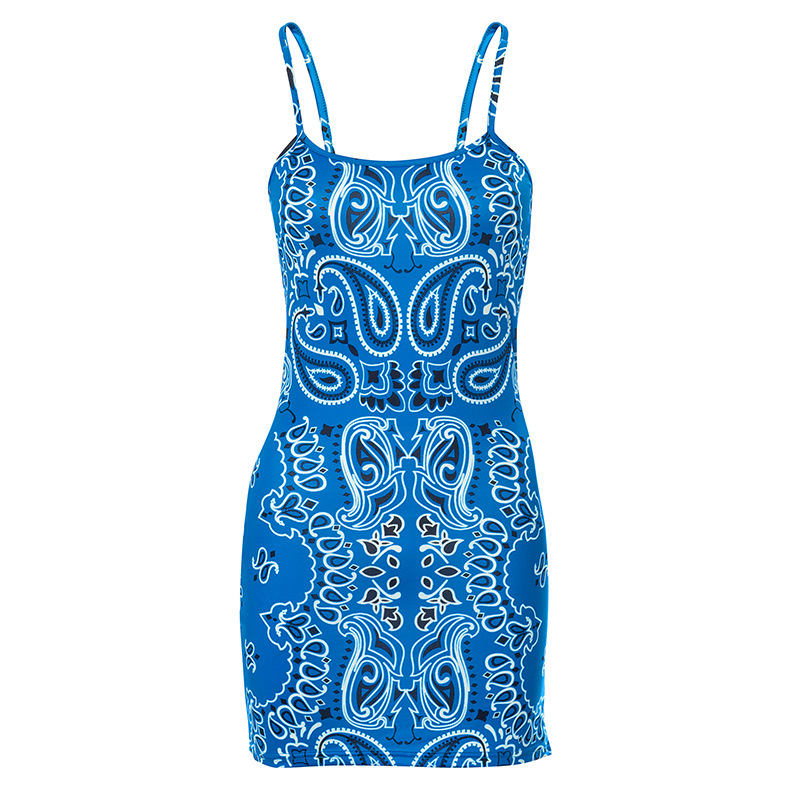 Paisley Printed Suspender Sheath Ultra-short Dress