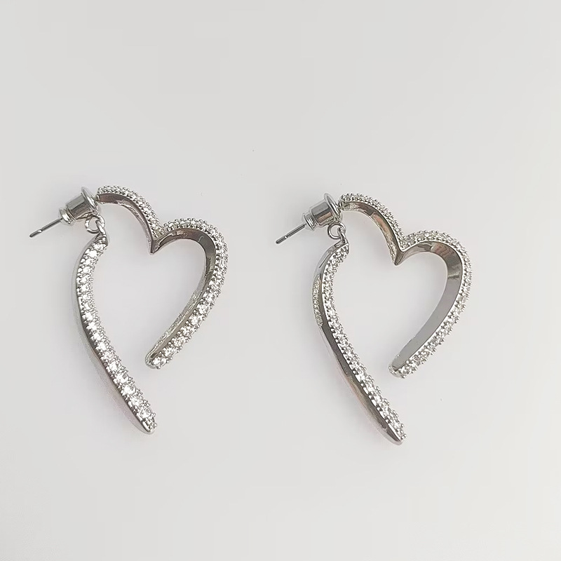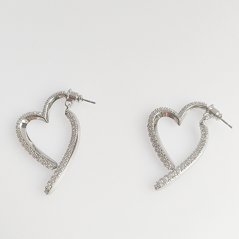 Front And Rear Dual-wear Love Heart Stud Earrings Micro Inlaid Zircon