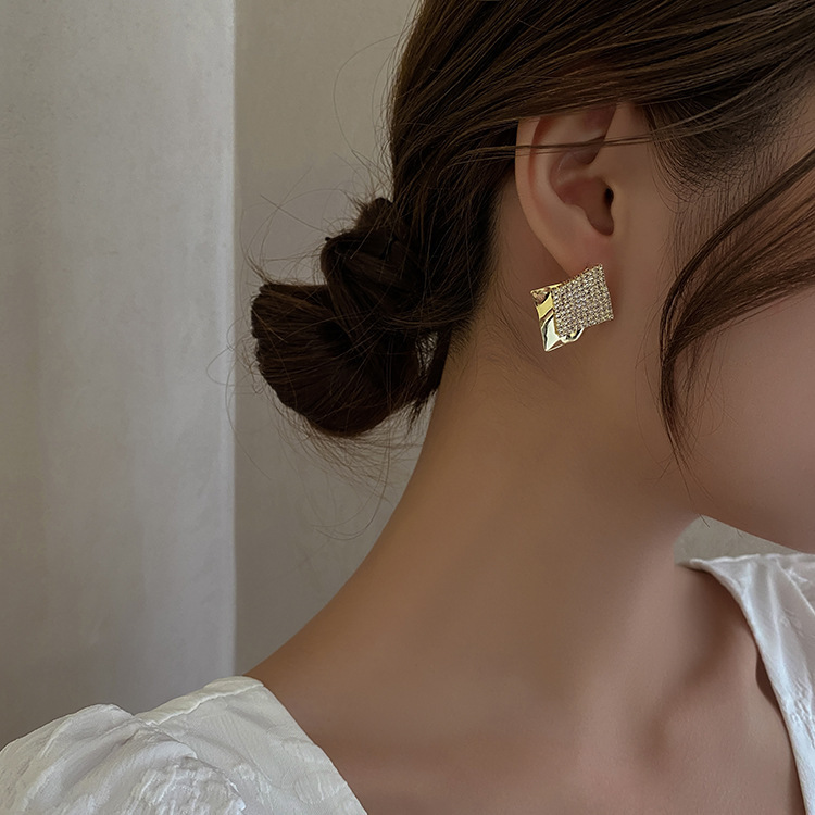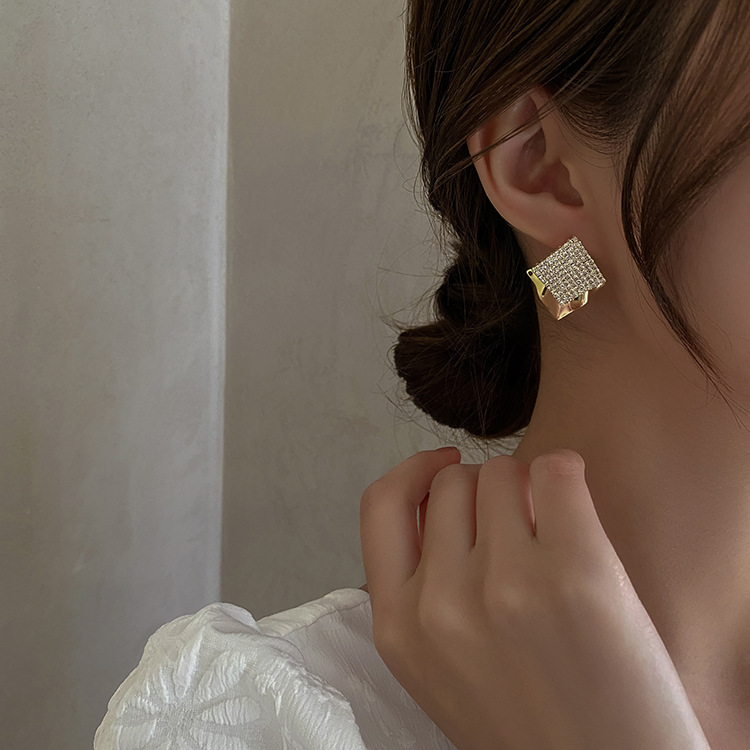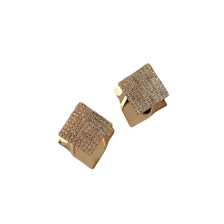 Super Flash Personality Atmosphere Fashion S925 Silver Needle Double Geometric Diamond Earrings Women