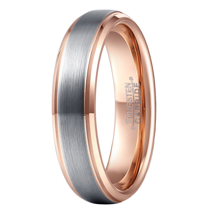 Tungsten Wedding Band Ring 6mm for Men Women Comfort Fit 18K Rose Gold