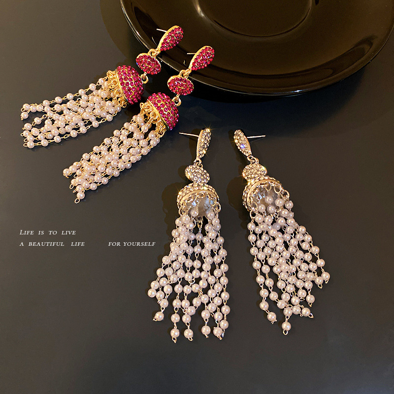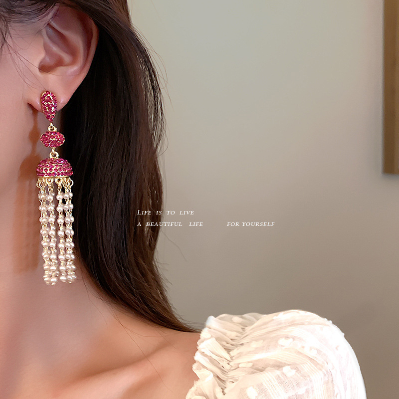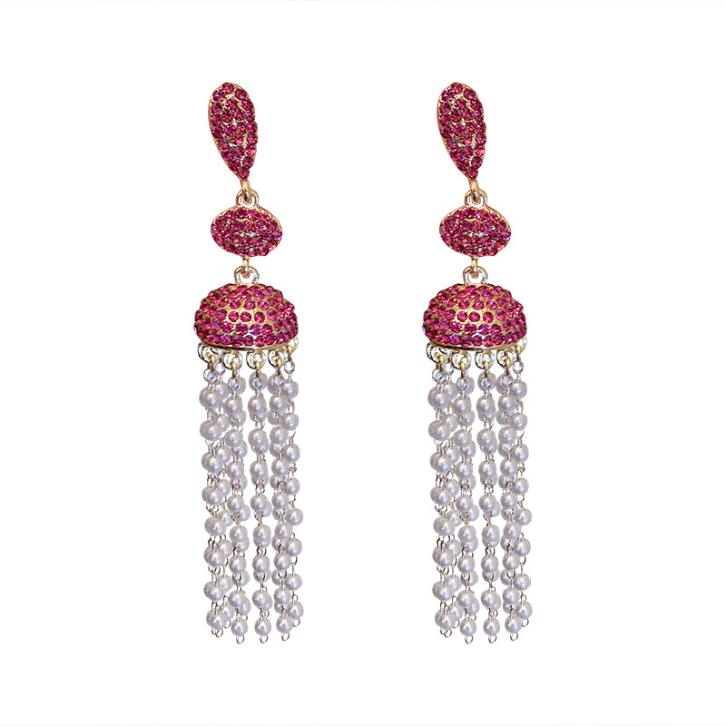Style: Women'sStyle: tasselInlay material: pearlColor: Silver Needle-Earrings. Pink, silver pin-earrings. silverPacking List:Pearl earrings x1pair