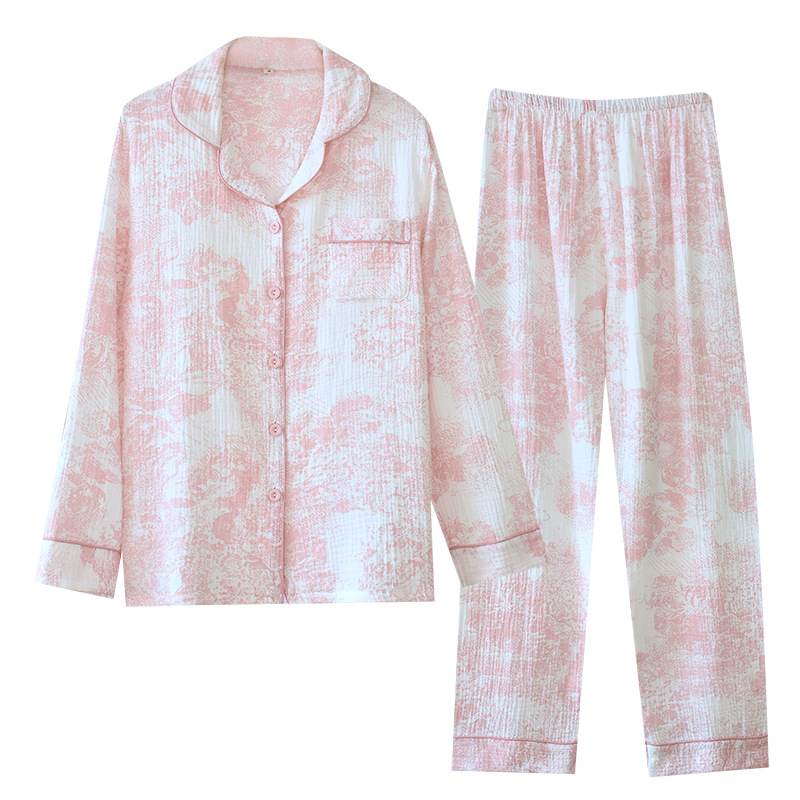 Color: crepe suit collar blue and white porcelain long cover, crepe suit collar ink pajama