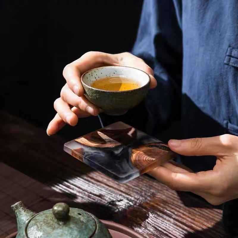Name: Tea Ceremony CoasterProduct category: tea strainer / saucerMaterial: ResinStyle: JapaneseProduct Name: Tea Ceremony CoasterMaterial: resin, pineShape: squareCraft: traditional craft