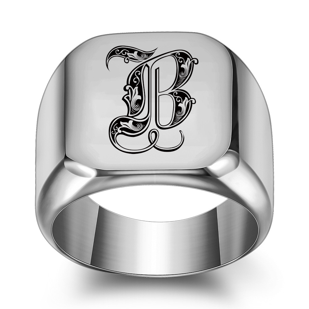 Product information:Type: Ring, ringTreatment Process: PolishingColor: A,B,C,D,E,F,G,H,I,J,K,L,M,N,O,P,Q,R,S,T,U,V,W,X,Y,ZMaterial: titanium steelStyle: Retro