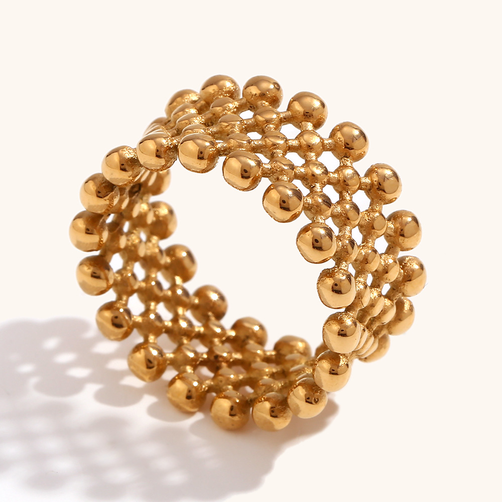 Product information:Type: Ring Treatment Process: Electroplating Color: small beads mesh cross arrangement ring-GoldSize: no.6, no.7, no.8 Style: Simple Material: Stainless steel Shapes: Geometry Popular elements: round Style: fashion OL
