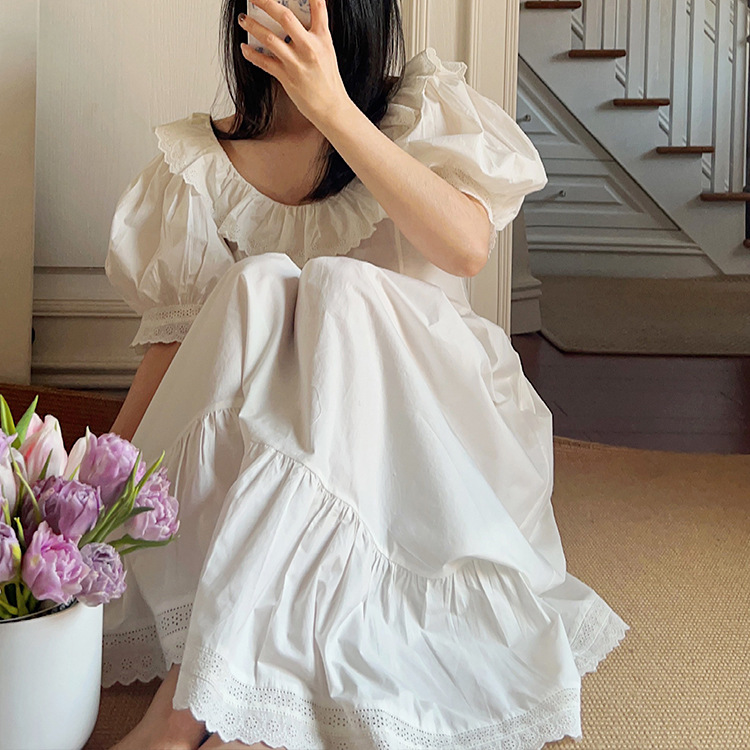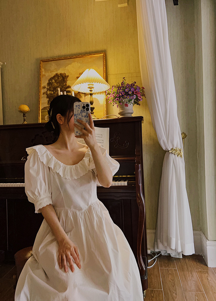 Product information: Fabric name: Cotton Color: Hepburn White Suitable season: Summer Size: M,S,L,XL Style: retro French court style