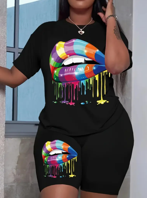 Women'S Two-Piece Set Featuring A Stylish Printed T-Shirt And Casual Shorts