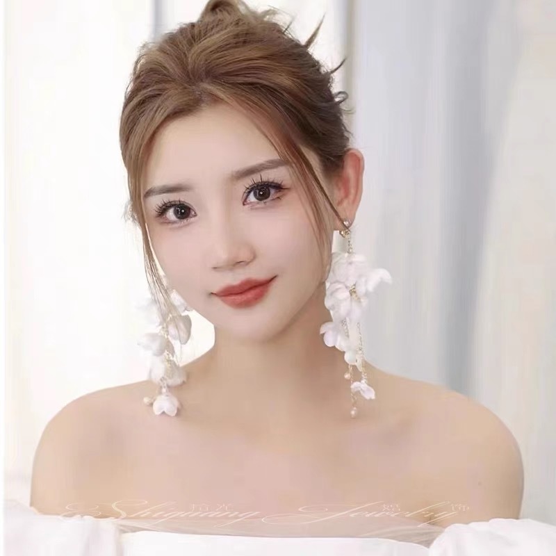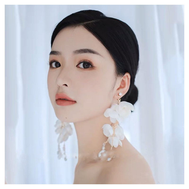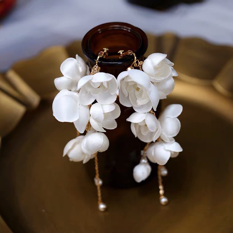 Material: AlloyShape: flowerProcessing technology: pure manualColor: White Flower Earrings Ear ClipsPopular elements: flowersPackage Contents:Ear clip X1 pair
