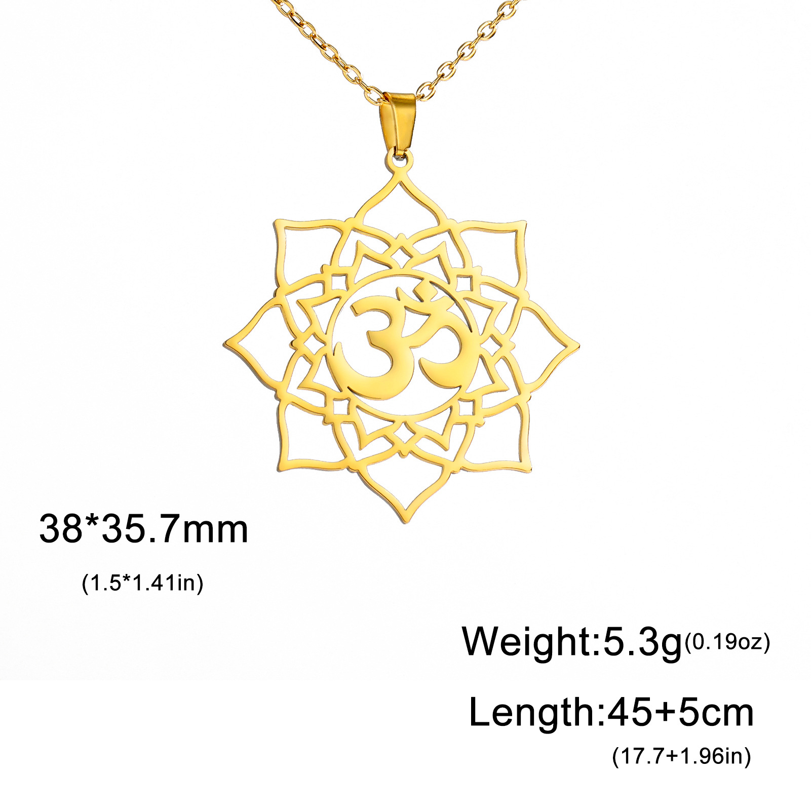 Color: steel-colored large omulet, gold-colored omulet, steel-colored omulet, gold-colored omulet, steel-colored omulet double-layer chain, gold-colored omulet double-layer chain, steel-colored yoga, gold yoga, steel yoga symbol flowers, gold yoga symbol flowers, steel sun yoga symbol, gold sun yoga symbol, steel lotus yoga symbol, gold Lotus yoga symbol, steel Om symbol, gold Om symbol