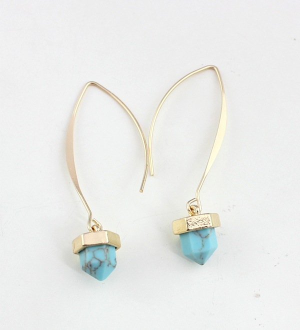 Product information:Material: Electroplating alloyStyle: Europe and AmericaStyle: Women'sModeling: GeometryColor: Turquoise E0985-1, White Turquoise E0985-2Packaging Information:Alloy earrings x1