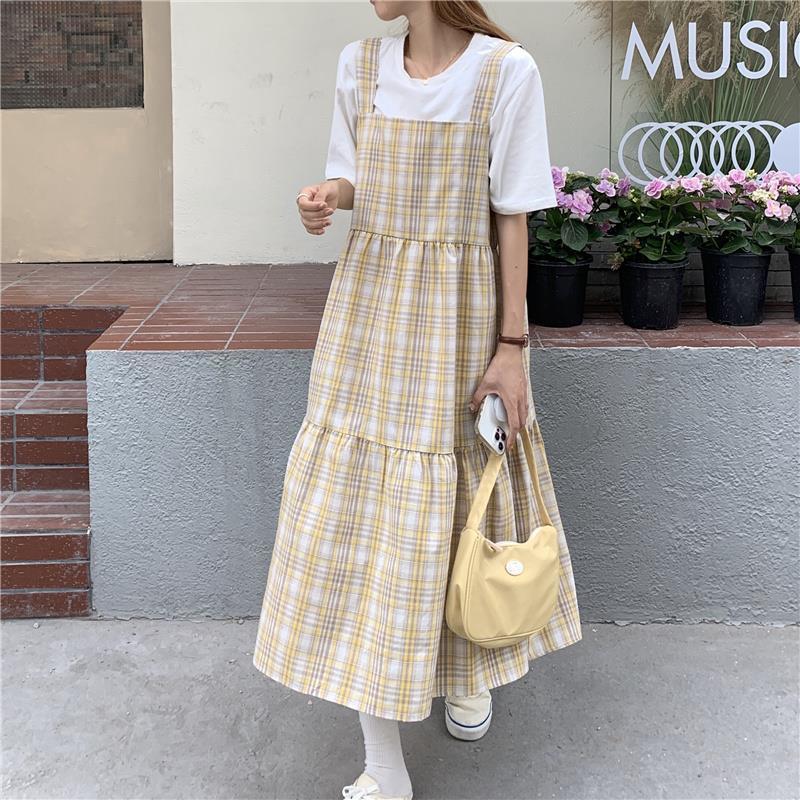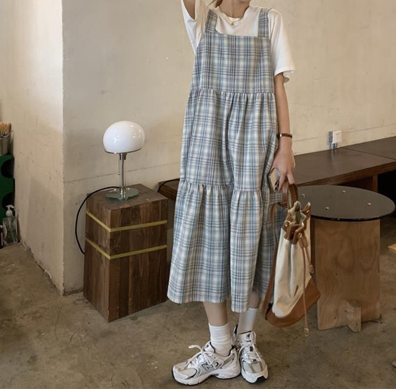Product information:Pattern: Plaid Fabric name: Polyester Color: yellow check overall dress, blue check overall dress Size: S,M,L,XL,XXL Applicable Gender: Female Style: casual style
