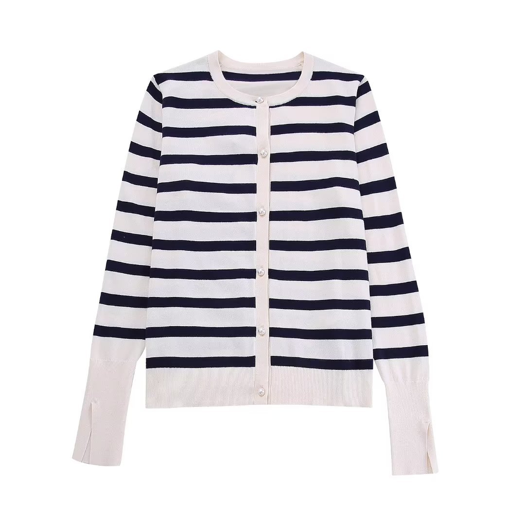 Product information: Color: blue and white stripes, black and white stripes Size: S,M,L Style: slim fit Style: Cardigan Sleeve type: conventional sleeve Main fabric composition: Polyester (polyester fiber) Sleeve length: long sleeve