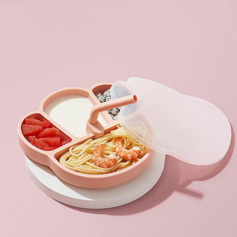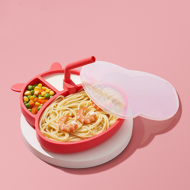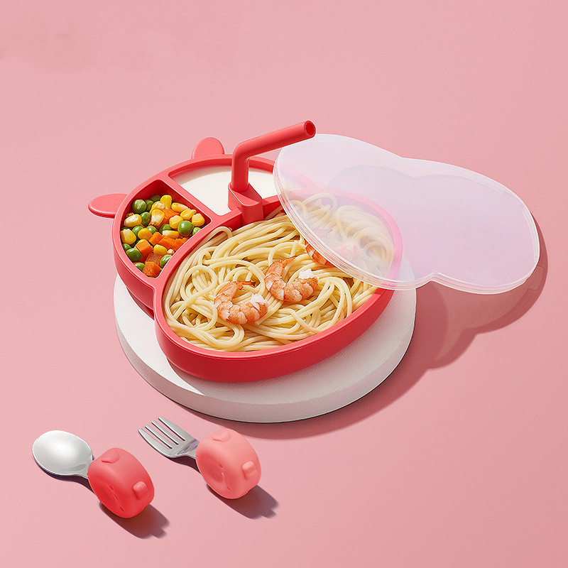D: Giggs Red Hippo Dinner Plate + Lid + Straw