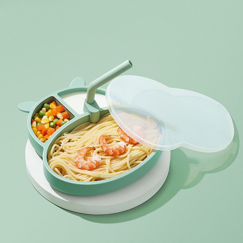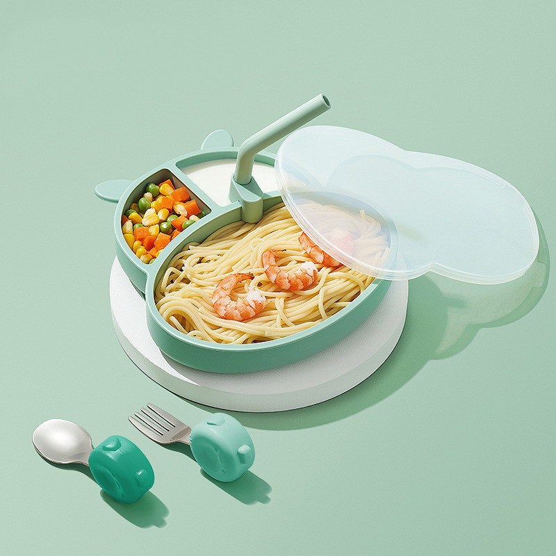 C: Verney Green Hippo Plate + Lid + Straw