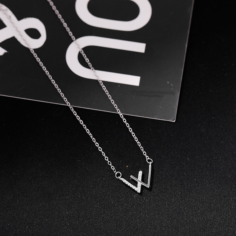 Product information:Treatment Process: Electroplating Color: W letter necklace platinum color, W letter necklace rose gold Applicable population: Female Material: Copper Shape: Geometry