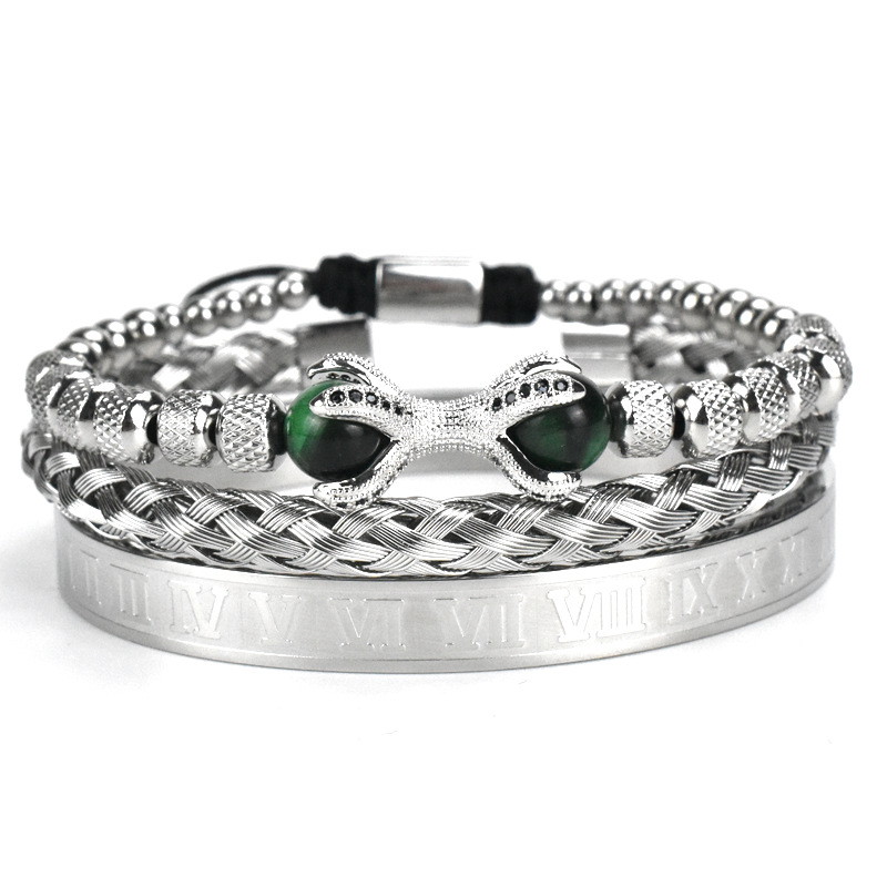 Product Information:Material: stainless steelStyle: UnisexColor: black, gold, steel green beads, black rose red beads, steel blue beadsStyle: ins stylePackaging list:3pcs Bracelet * 1 set