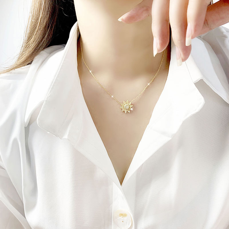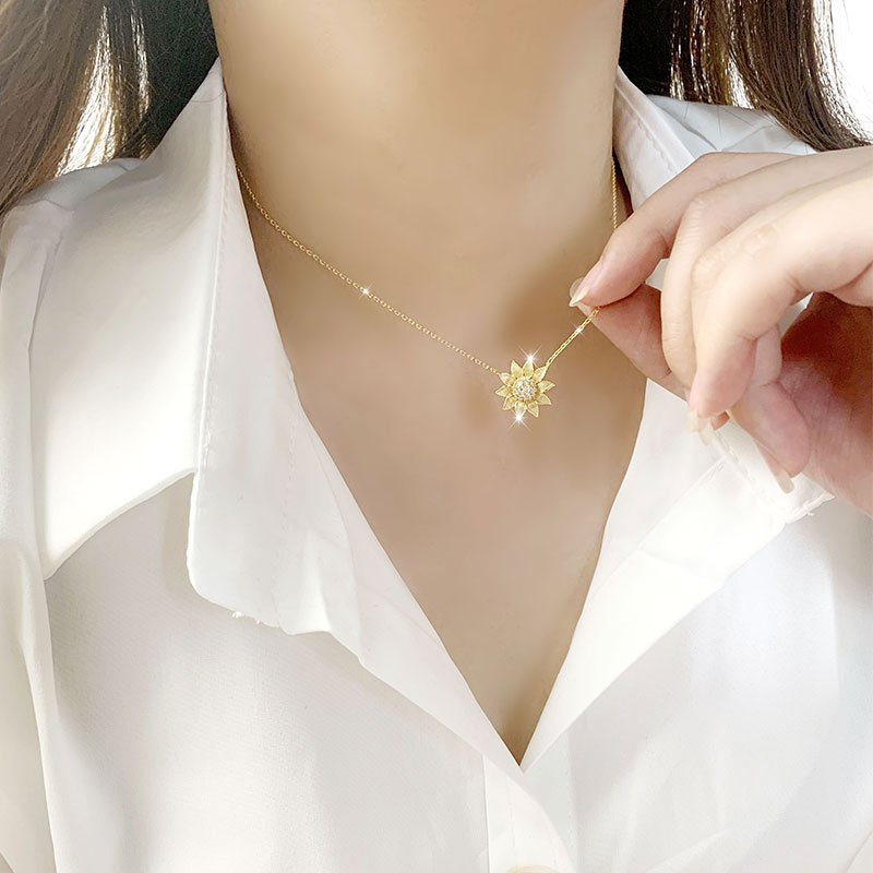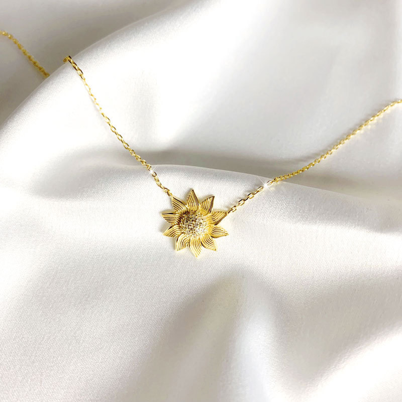 Style: Korean version of Korean/Korean styleMaterial: silverTreatment process: electroplatingType: NecklaceShape: SunflowerExtension chain: less than 10cmPendant material: 925 silverColor: Sunflower necklacePurity: 925 silver