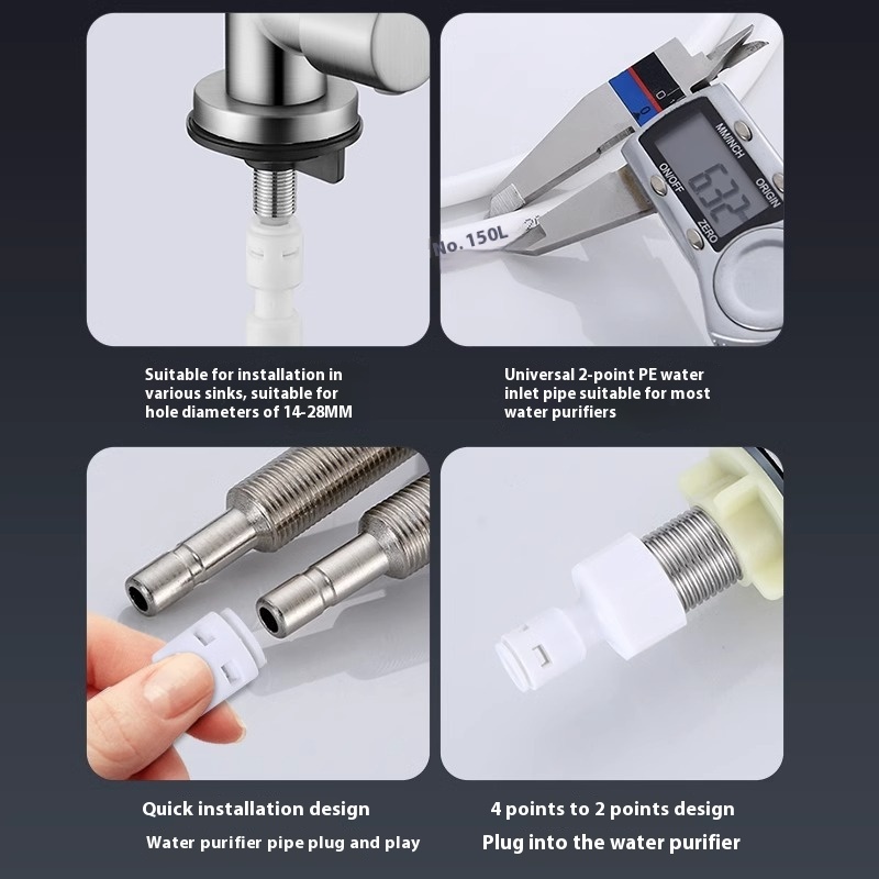 Specifications: alloy-Inclined Tube-single inlet (2-point)-mirror silver, refined copper-Inclined Tube-single inlet (2-point)-mirror silver, refined copper-elbow-single inlet (2-point)-Mirror silver, fine copper-elbow-double water inlet (2-opening)-mirror silver, fine copper-elbow-single water inlet-wall inlet (4-opening)-mirror silver, 304 stainless steel-elbow-flat single inlet (2 ports)-brushed silver, 304 stainless steel-elbow-flat single inlet (2 ports)-dark night, 304 stainless steel-elbow-flat single water inlet (4 split ports)-dark night, 304 stainless steel-elbow-flat double water inlet (2 split ports)-brushed silver, 2 split PE purified water pipe 5 m, 2 points PE purified water pipe 10 m