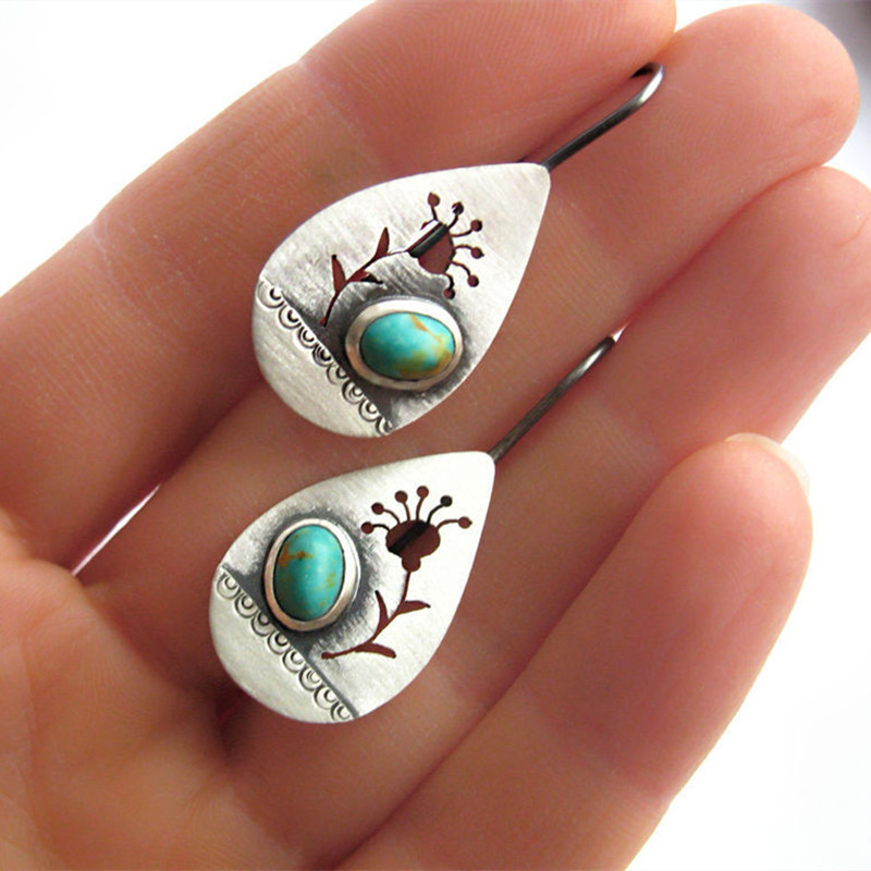 Water Drop Hollow Retro Flower Earrings