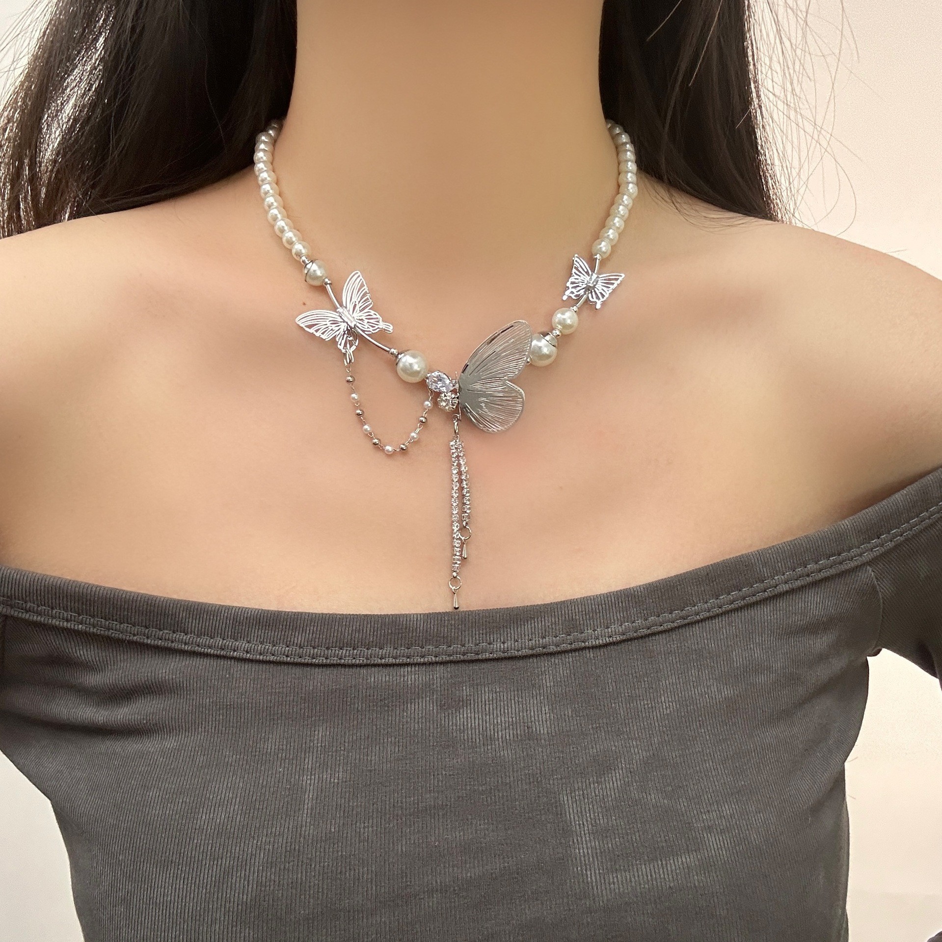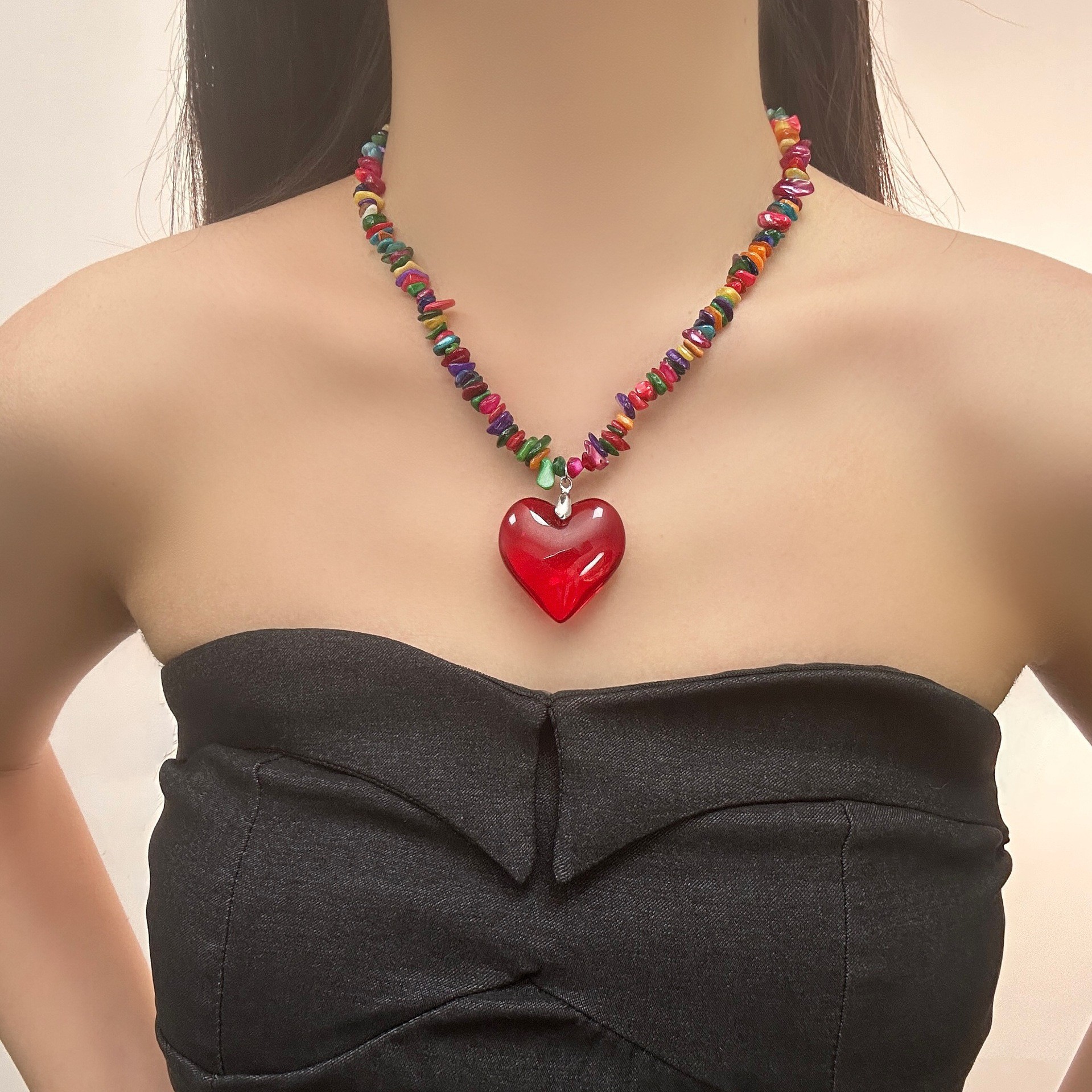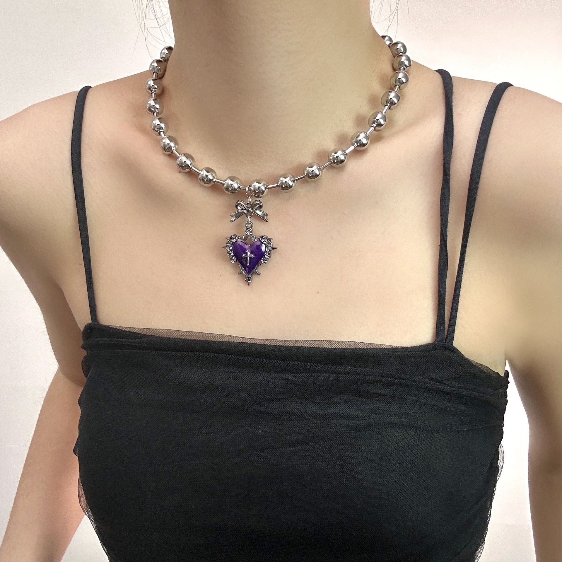 Color: Crescent pendant necklace-DX0527, love pendant necklace-DX0723, black beaded necklace-DX0727, small flower beaded necklace-DX0746, butterfly tassel necklace-DX5235, cat's paw printed pendant necklace-X5034, metal butterfly necklace-X5049, Purple Heart necklace-X5098A, heart-shaped tassel necklace-X5163