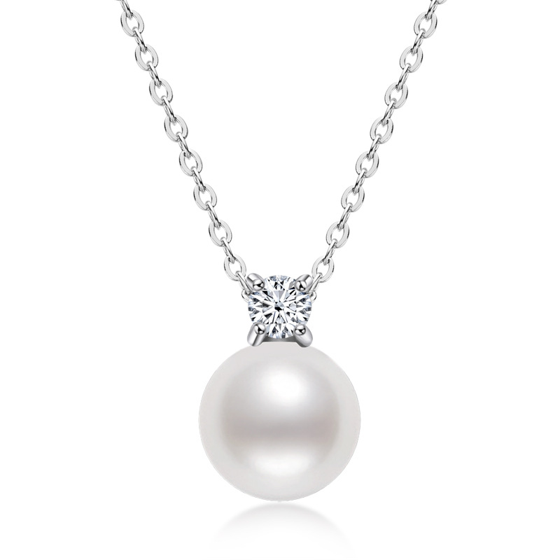 Natural Freshwater Pearl Necklace Pendant In Sterling Silver With Diamonds