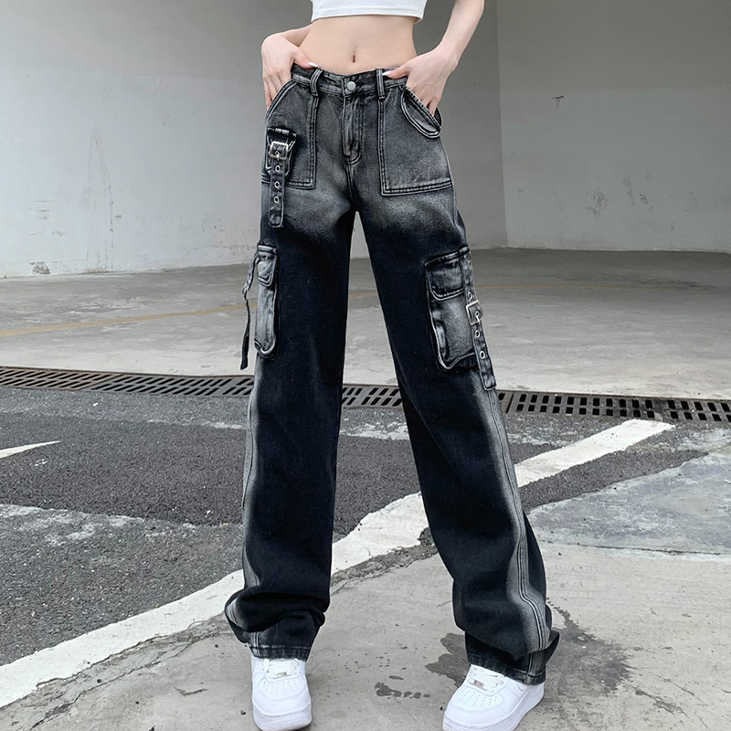 Popular elements: Tie-dye wash old metal buckle pockets
