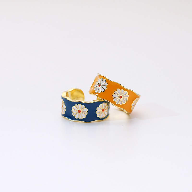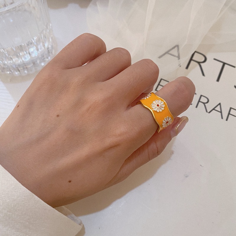 Retro drop oil small Daisy open ring wide ring floret single ring fashion trend web celebrity niche design women