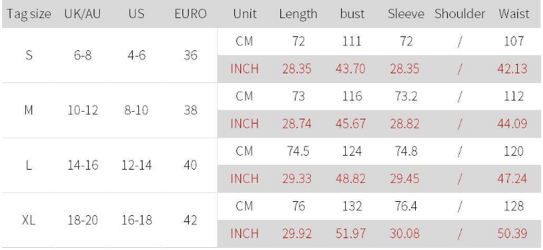 2. Please check the size chart carefully before you buy the item, if you don't know how to choose size, please contact our customer service.