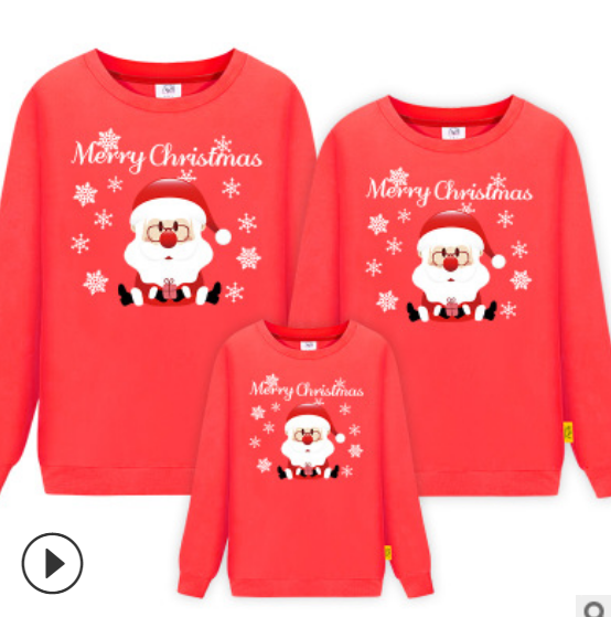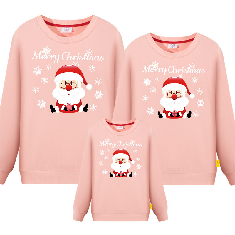 Santa Claus Print Crew Neck Sweater For A Family Of Three