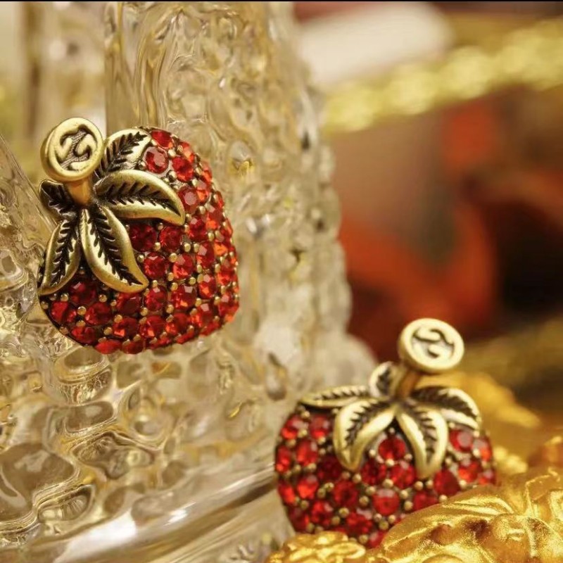 Full Diamond Red Strawberry Cute Sweet Cool Vintage Earrings