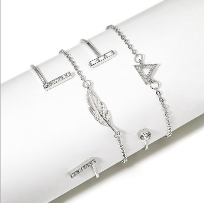 Trendy Gold Silver Crystal Leaf Moon Arrow Cat Bracelet set for Women Geometric Adjustable Bracelet Bangle Pulseiras