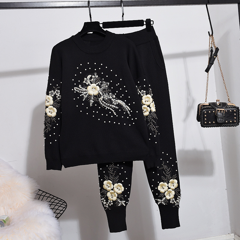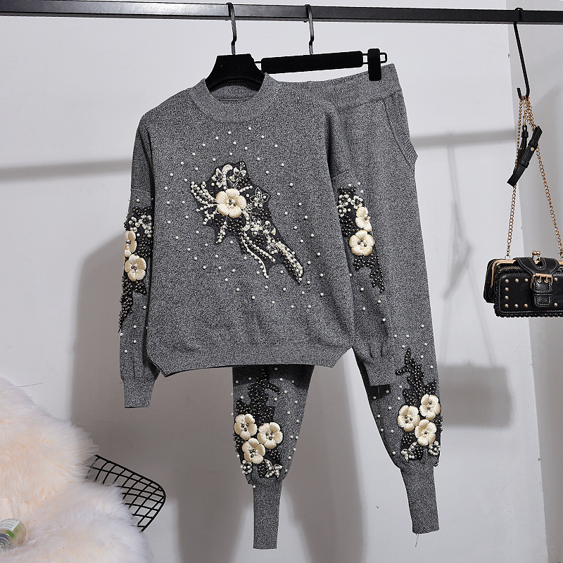 Color: black top + pants (two-piece suit), gray top + pants (two-piece suit)
