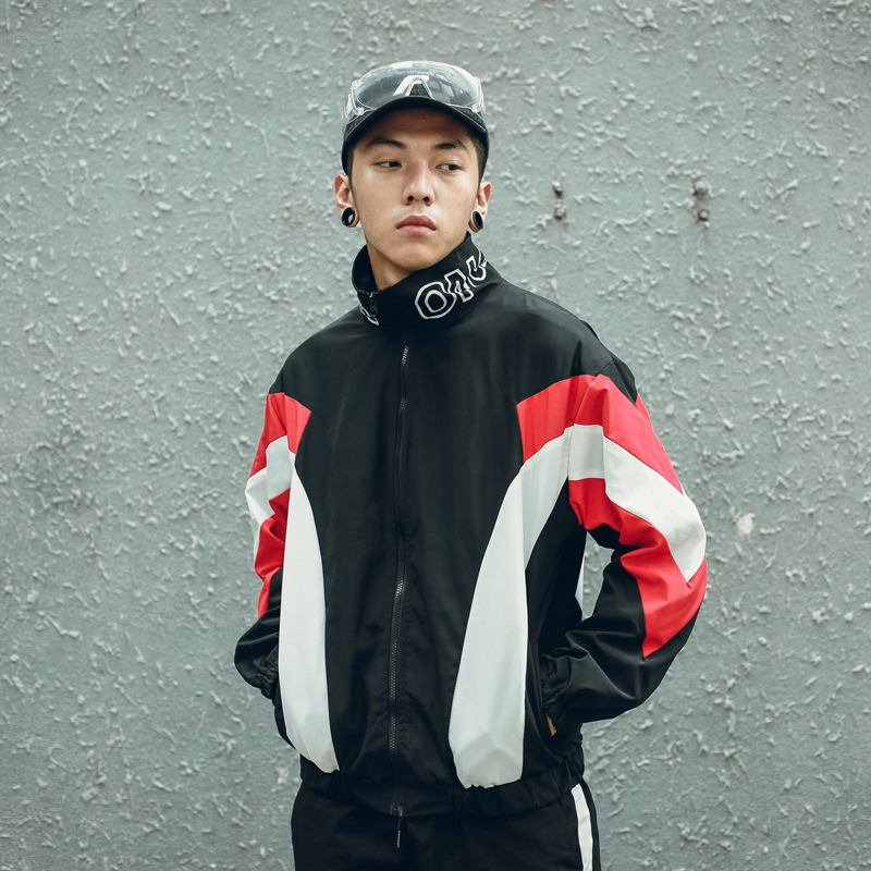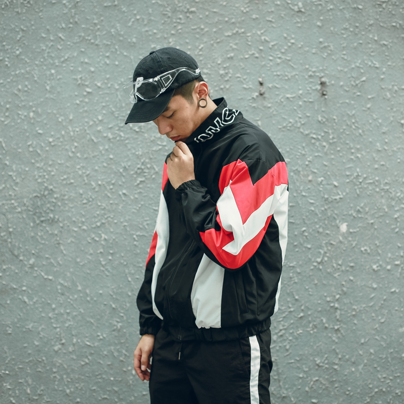 Material: CottonPattern collar type: stand-up collarClothing placket: zipperColor: black redVersion: looseClothing style details: zipper decoration