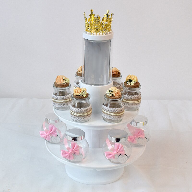 A small keychain type device is located at the bottom of the stand, which can be used by parents or cake makers to trigger the middle tube to open the inner gift from the top of the cake.