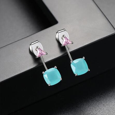 The new design fashion square triangle blue glass drop earrings copper cubic zirconium for women girls evening of tourism
