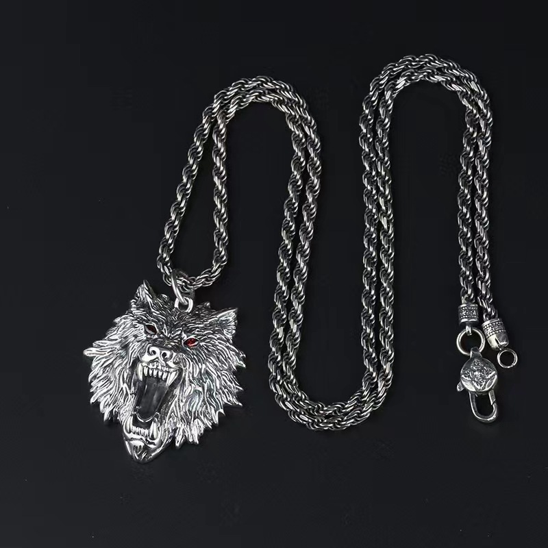 Product information:Processing Technology: Old Color: single wolf head pendant Material: Silver Purity: 925 silver Modeling: animal/Zodiac Popular elements: beast pattern Style: Personality