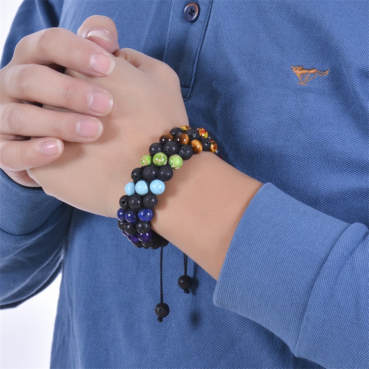 Style: European and AmericanMaterial: natural stone, seven chakras, volcanic stoneProcessing technology: manualInlay material: not inlayColor: 8MM-three-row chakra bracelet,