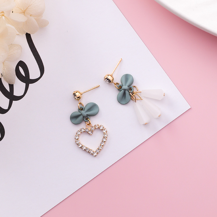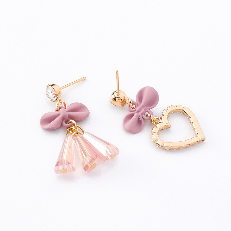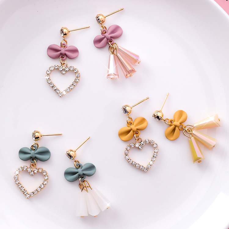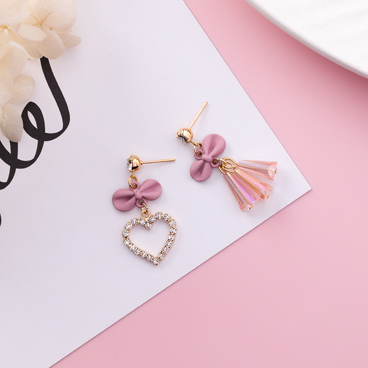 Diamond Love Bow Asymmetric Earrings Clear Crystal Fringe Earrings