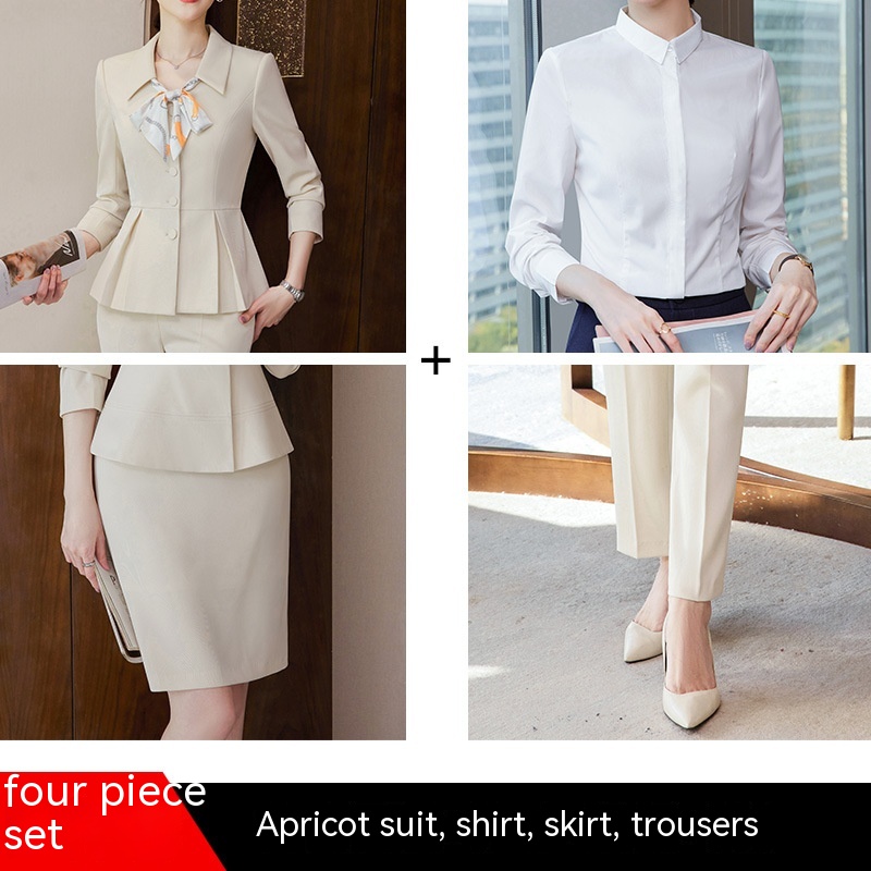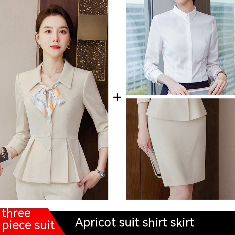 Color: apricot coat and cap skirt, navy coat and cap skirt, apricot coat and cap pants, navy coat and cap pants, apricot coat and cap skirt white long sleeve shirt (605), navy blue coat skirt white long sleeve shirt (605), beige coat pants white long sleeve shirt (605), dark blue top pants white long sleeve shirt (605), apricot coat and cap skirt trousers, dark blue coat and cap skirt trousers, apricot coat and cap skirt trousers, white long sleeve shirt (605), dark blue coat and cap skirt trousers, white long sleeve shirt (605)